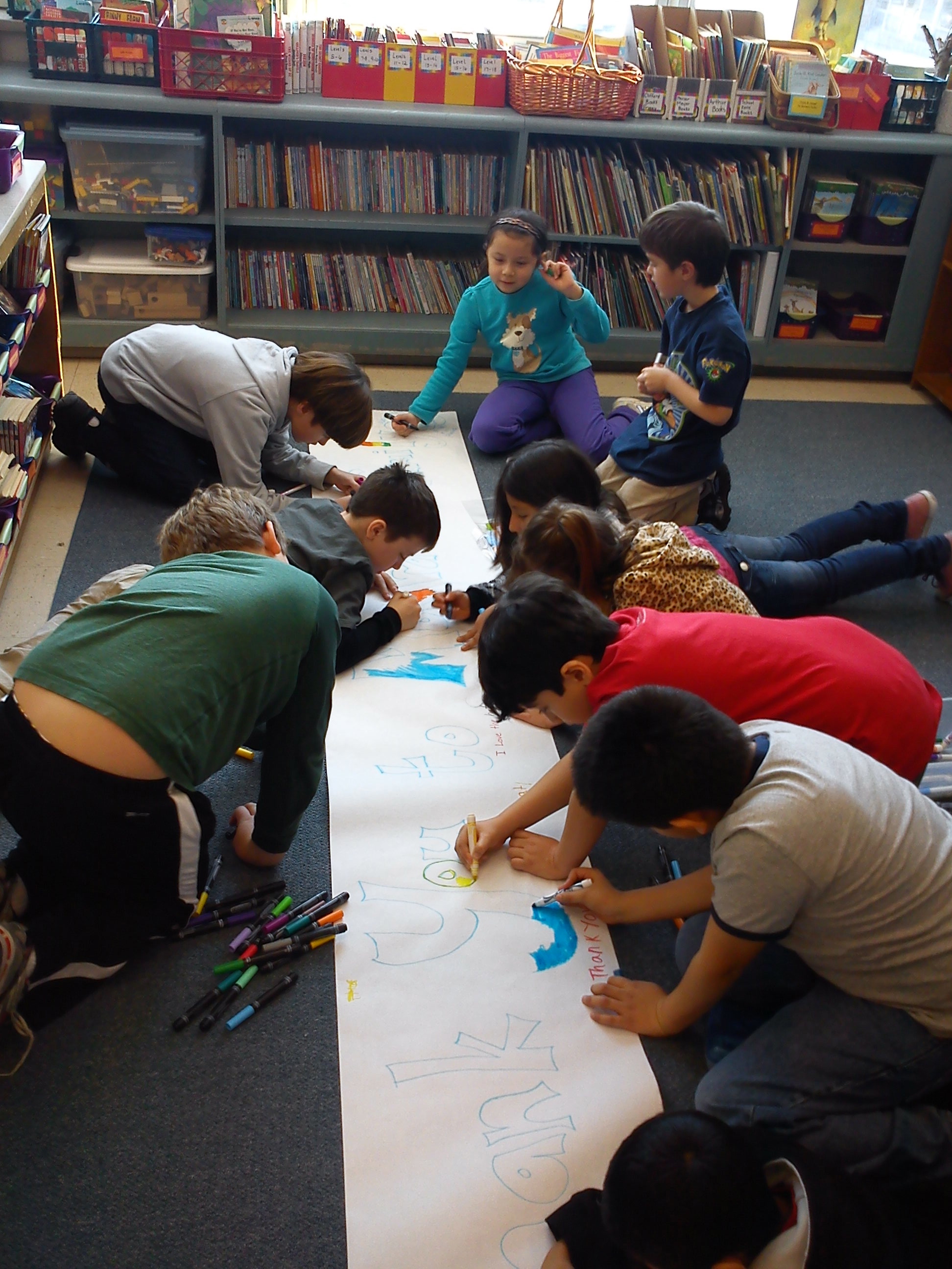 Rasmus målar med klassen under sin första skoldag